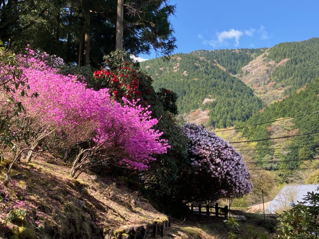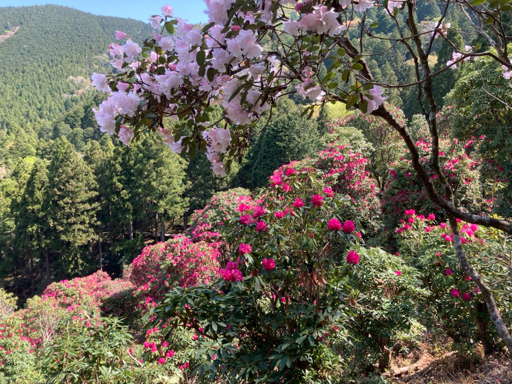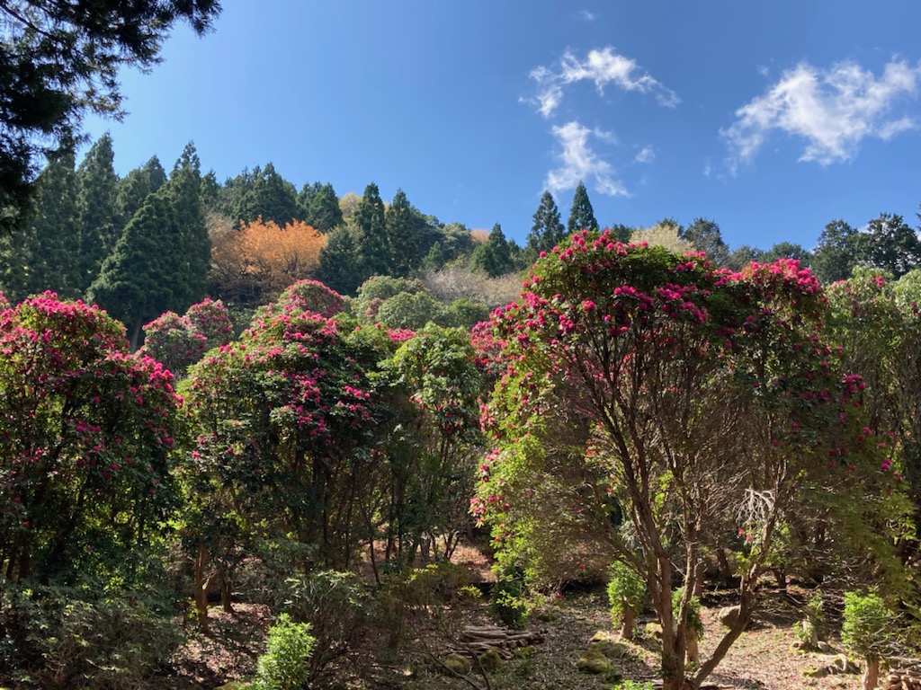 ↑ 「天城つつじ」や「三つ葉つつじ」も青空をバックに、きれいに咲いていた 👍😊