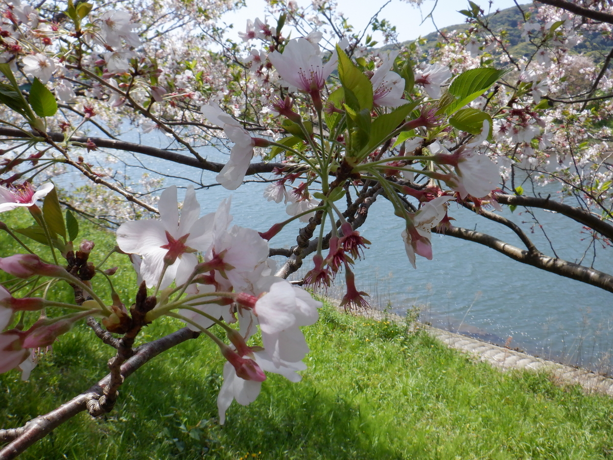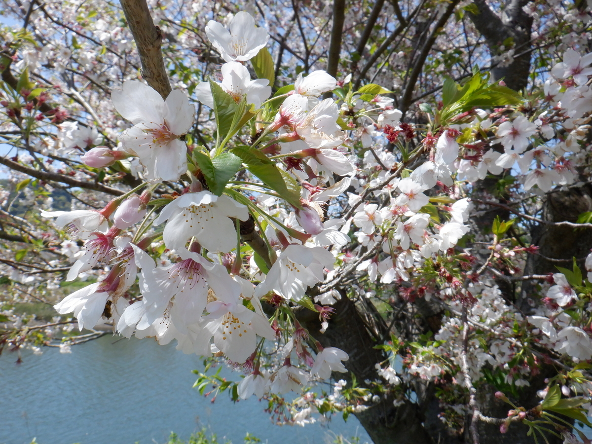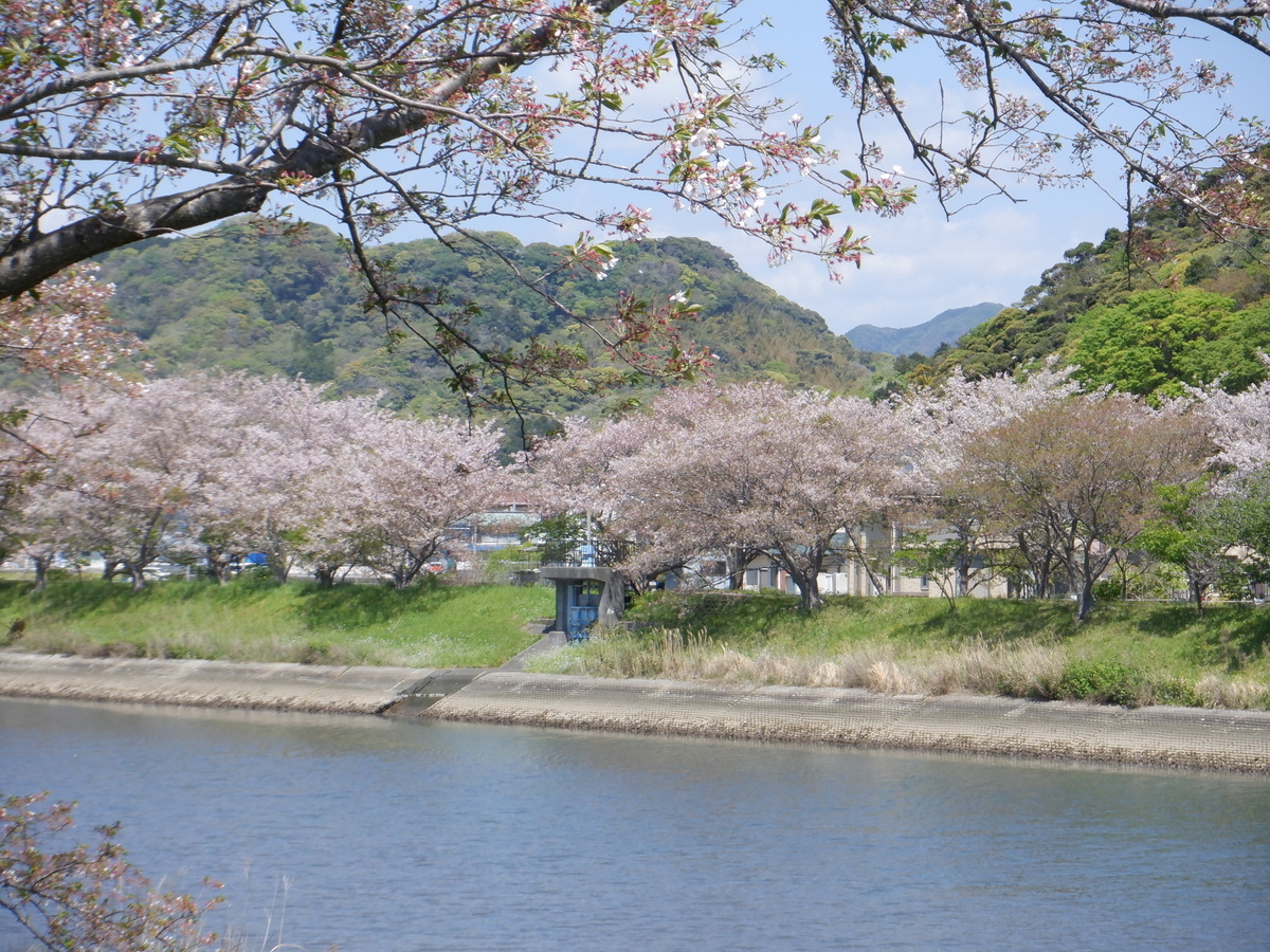 ↑ もちろん、だいぶ葉桜の割合が多いのだが、川を挟んで見てみるとこんな風にきれいに見ることができた・・・🌸🌸😊😊👍