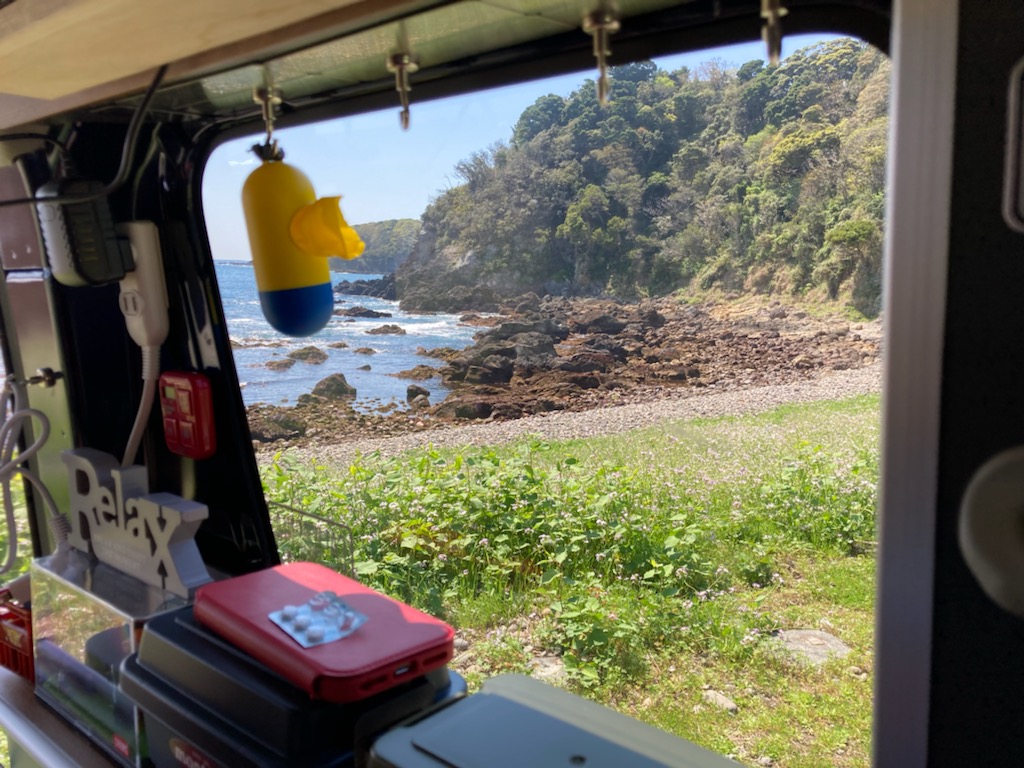 ↑ 今日の移動レストランの窓からの眺めも最高・・・👍👍 バックドアを開けると磯のいい香りが吹き込んでくる・・・😊😊👍 道の駅で買った炊き込みご飯も、桜餅も大変おいしかった・・・😊😊