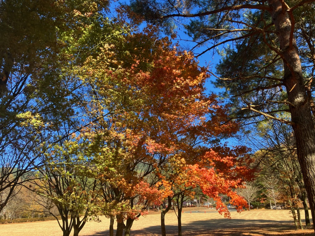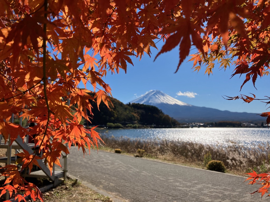 ↑ お腹もいっぱいになったし、富士山にも元気をもらって、「久保田一竹美術館」までウォーキングしながら紅葉狩り・・・🏃🏃🍂🍃🍁