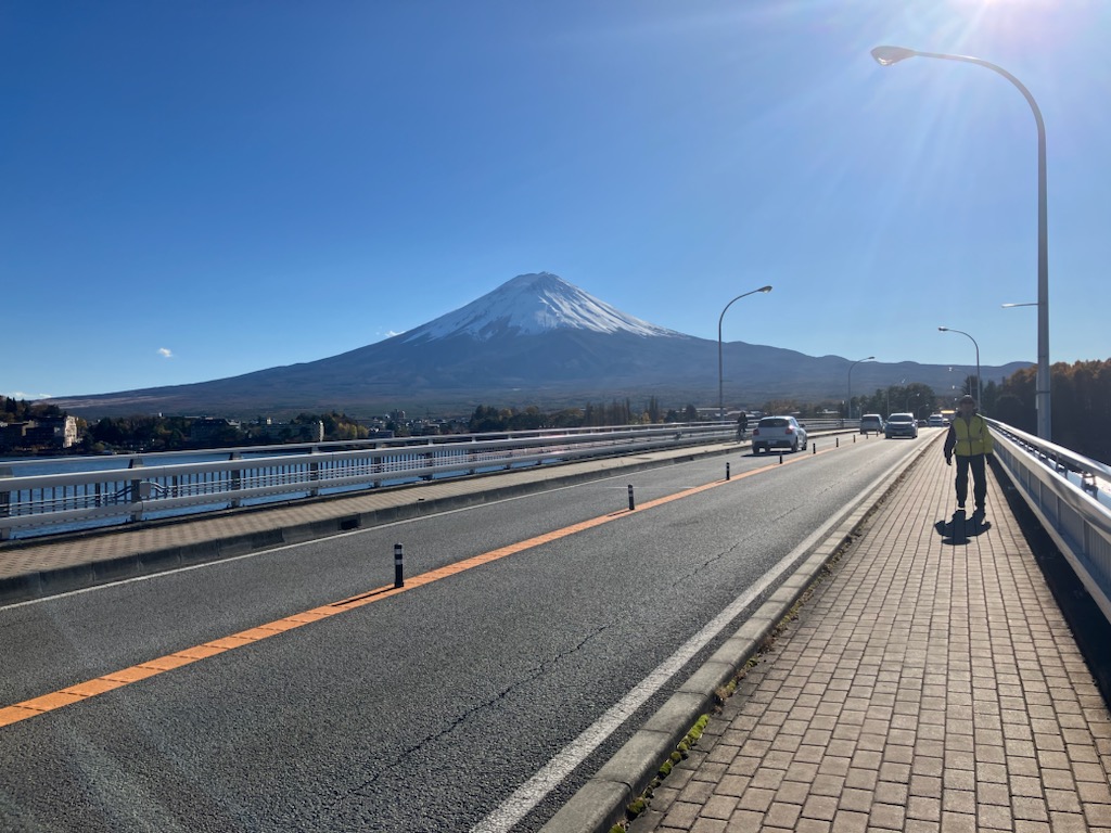 ↑ 予定数のウォーキングの歩数は達成・・👍👍 河口湖大橋を渡って車に帰ろう・🚐今日は四六時中富士山が姿を見せていた・・・🗻🗻🗻😊😊👍