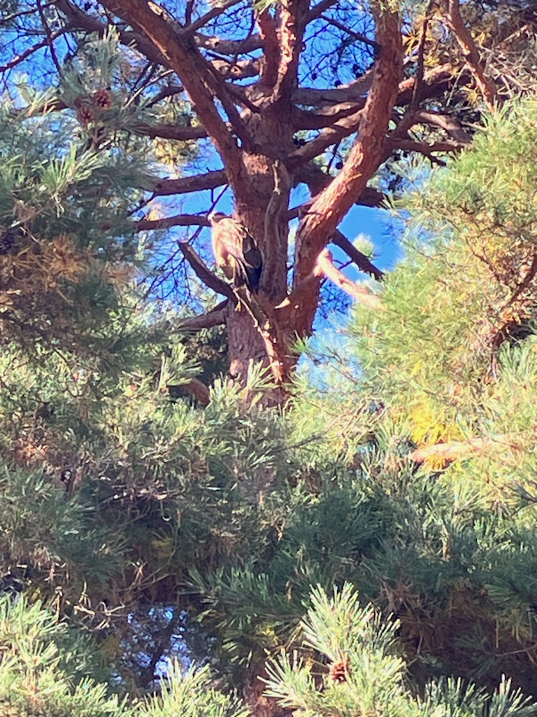↑ 鳴き声がするなあと思って見上げたら、鷹?トンビ?🐦が松の枝に・・・😊😊👍