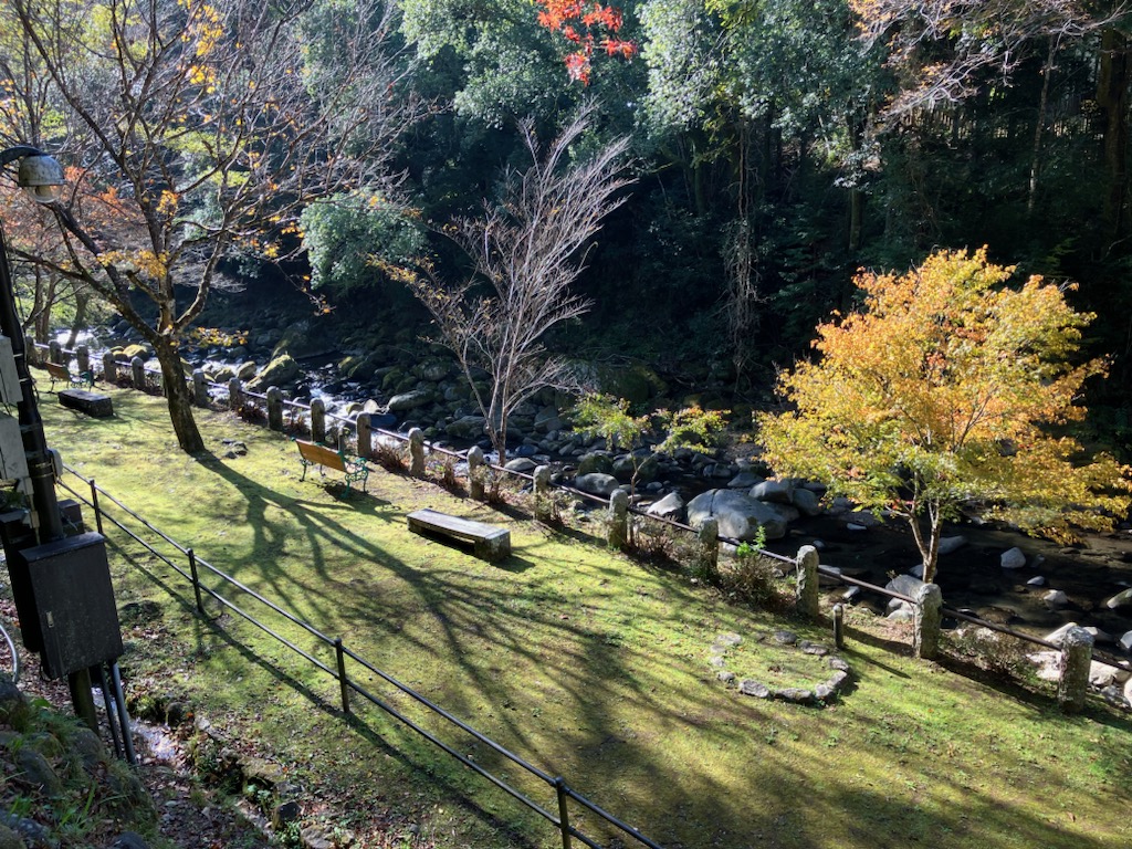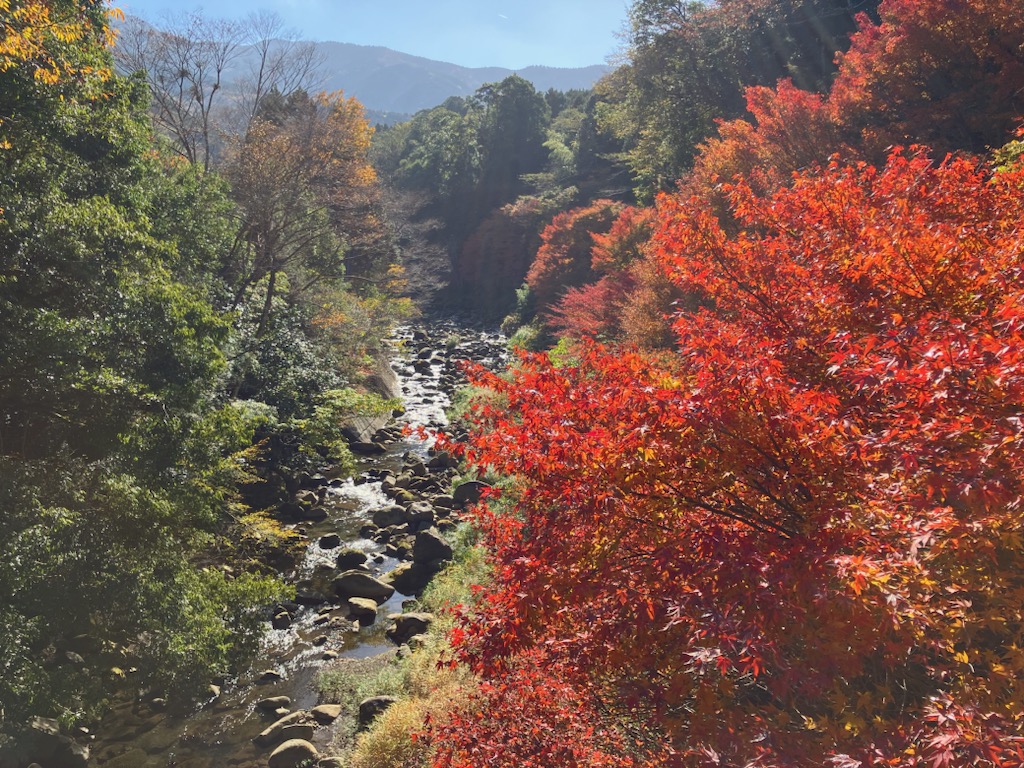 ↑ 本谷川の反対側を通って駐車場に戻ろう・・・沿道の紅葉もきれいだ・・🍂🍃🍁